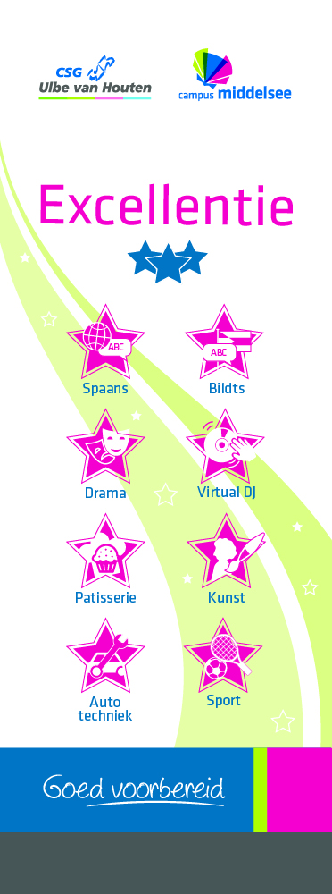 Als je wat verder wilt kijken dan de lesstof hebben we Maatwerk Excellentie. Hier doe je in kleinere groepen vaardigheden op die als extra worden aangeboden. Denk aan een workshop Autotechniek, een cursus Spaans, een website bouwen of speciale technieken leren bij Beeldende Vorming.