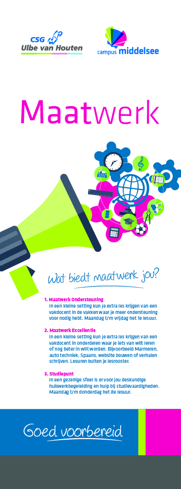 Op onze school zijn we er ook voor je als het niet loopt bij een vak of met je huiswerk. Of als je wat verder wilt kijken dan de gewone lesstof. Daarvoor hebben we Maatwerk!