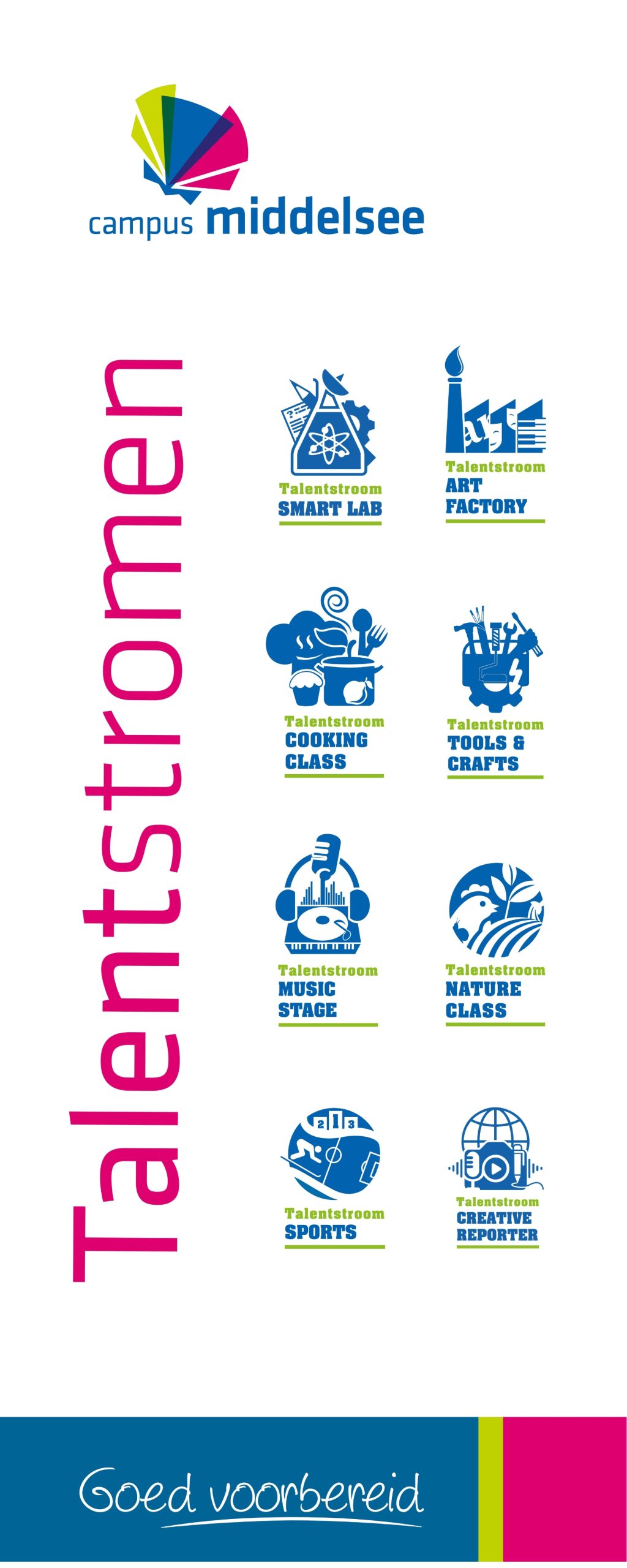Op Campus Middelsee kun je doen waar je goed in bent. Naast ons brede aanbod in alle opleidingen bieden we in leerjaar 1 en 2 Talentstromen aan. Binnen de opleidingen vmbo, havo en atheneum kun je kiezen voor extra lessen sport, kunst en cultuur, toerisme en ondernemen, muziek, koken, natuur en dier, vakmanschap techniek of techniek en programmeren. We werken daarbij samen met bedrijven en instellingen waar je opdrachten voor kunt gaan doen, kortom Levensecht leren!